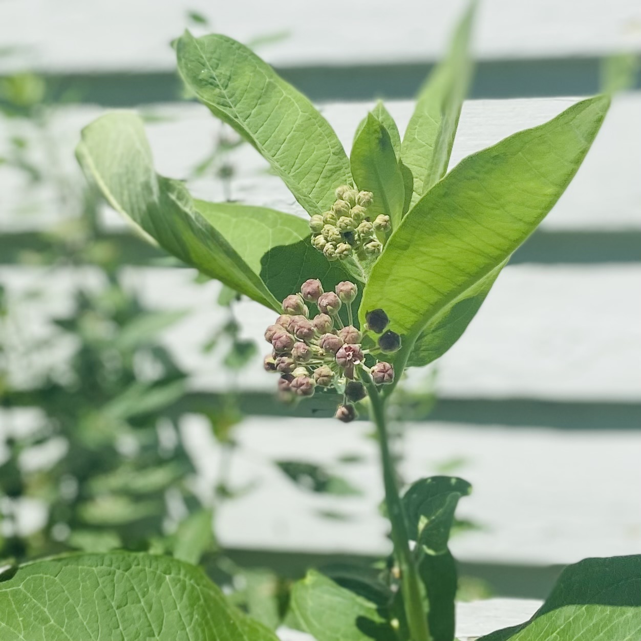 The slugs are only visible at night—and the sheer volume of slugs is like something out of a horror movie—but, by day, it’s quite clear that they’ve been feasting on pansies and violas in addition to the milkweed. And not only does the milkweed harbor the demon hordes of slugs, but it’s also crowding out poppies, snapdragons, nigella, and larkspur. So, I’ve been thinking about pulling it up—at least from the beds where I’m actually trying to grow flowers.