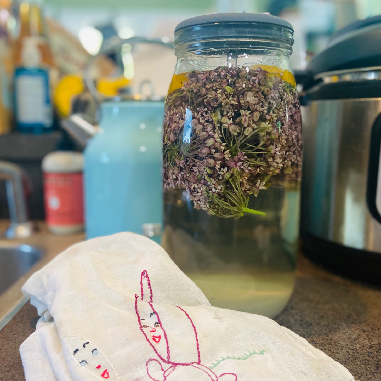 Then I watched Alexis Nikole Nelson’s video about milkweed cordial, and it encouraged me to harvest some milkweed flowers and make a fermented beverage instead of yanking the plants out by the roots.